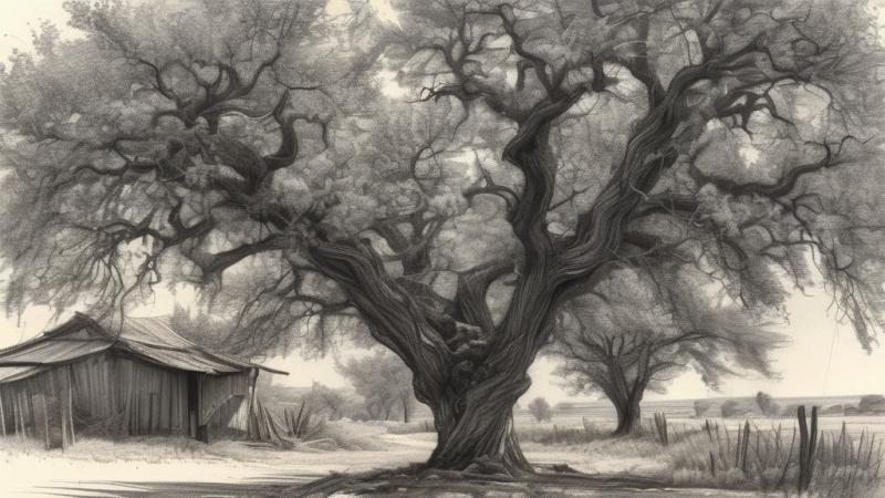 老槐树就站在村口,不知站了多少年。它的树干粗壮得需三人合抱,树皮是深褐色的,皲裂如祖父的手背,每一道纹路里都藏着风霜。夏日,它撑开一柄巨大的、墨绿的伞,投下满地晃动的光斑,那便是我们整个童年的清凉疆域。