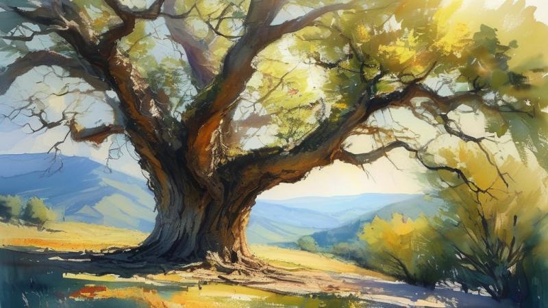 后来,我离家求学,在课本与试卷的丛林里跋涉。偶尔回乡,匆匆一瞥间,只觉得它一次比一次矮小、灰暗。直到那个为学业挫折而沮丧的黄昏,我再次独自走到它跟前。夕阳为它镀上金边,我忽然看见,它有一根巨大的枝桠已然干枯,像一道触目惊心的伤痕。可就在那枯枝旁侧,一簇嫩绿的新枝正奋力抽出,在晚风里轻轻摇曳。那一瞬,我被深深震撼了。生命的蜕变,从来不是焕然一新的取代,而是带着伤痕与记忆,在旧的躯壳上生长出新的希望。老槐树没有言语,却用它自身的存亡更迭,教会我接纳失去,并珍视新生。