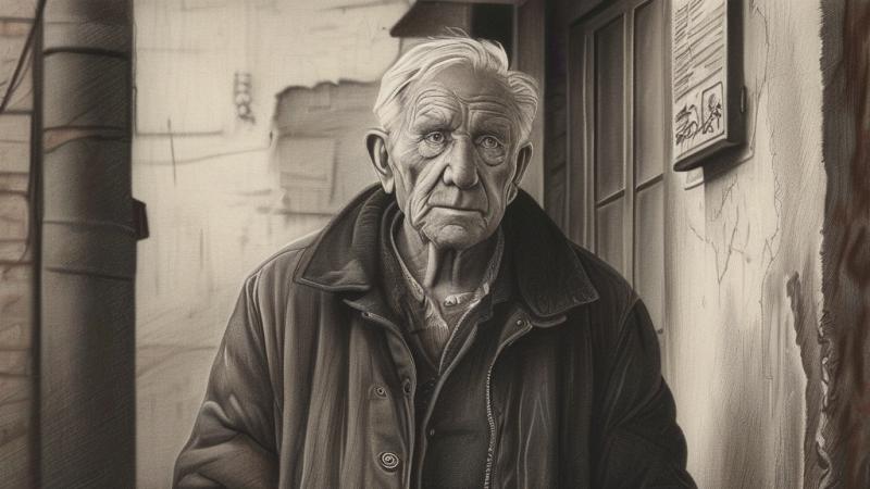 搬进新家的第一天,我就注意到了他。他总坐在三楼拐角处那把褪色的旧藤椅上,像一尊沉默的雕像,身后是斑驳的墙皮和堆着杂物的角落。我每次放学回家,脚步声在空旷的楼道响起,他便会微微抬起低垂的眼睑,目光随着我的身影移动,直到我消失在家门后。那目光里没有内容,只是一种习惯性的注视,让我感到些许不自在,于是我也总是低头快步走过,从未想过停留。