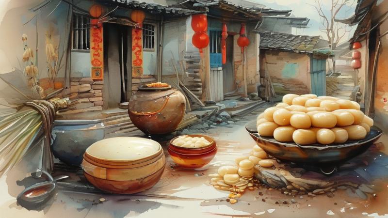 刚出炉的年糕温润如玉,蘸上一点白糖,便是孩童们最爱的零嘴,那软糯清甜的滋味瞬间在口中化开。而年糕在母亲手中,更能变幻出万千花样。或与青菜、肉丝同炒,咸香可口;或放入鸡汤里慢煮,吸饱了汤汁,鲜美无比。除夕夜,一碗热腾腾的荠菜肉丝炒年糕必定在席,寓意“年年高”。全家围坐,灯火可亲,咀嚼着糯滑的年糕,听着长辈的叮咛,那种踏实与满足,是任何山珍海味都无法替代的。 食物之所以成为乡愁的载体,是因为它封存了时光的温度与手掌的温情。