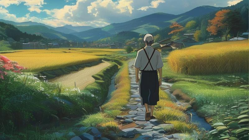 晚风拂过稻田,掀起层层绿浪。我学着爷爷的样子,赤脚踩进温润的泥土里,一股奇异的温暖从脚底升起。我不再说话,只是和他并肩看着夕阳将天际染成金黄。所有的隔阂,仿佛都被这广阔的土地吸纳、消融。代沟或许从未真正消失,但理解可以搭建一座桥,桥的这头是我的未来,那头是他的守望,而桥墩,正是这沉默而坚实的土地。